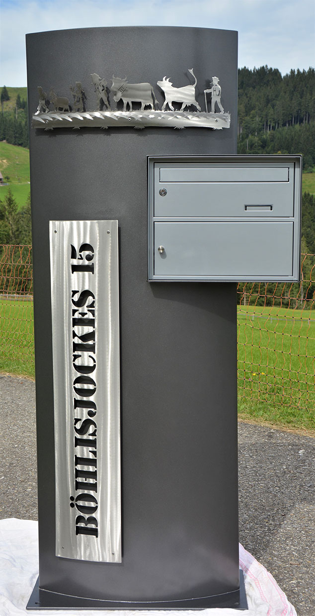 Briefkasten Linsenform mit Alpaufzug