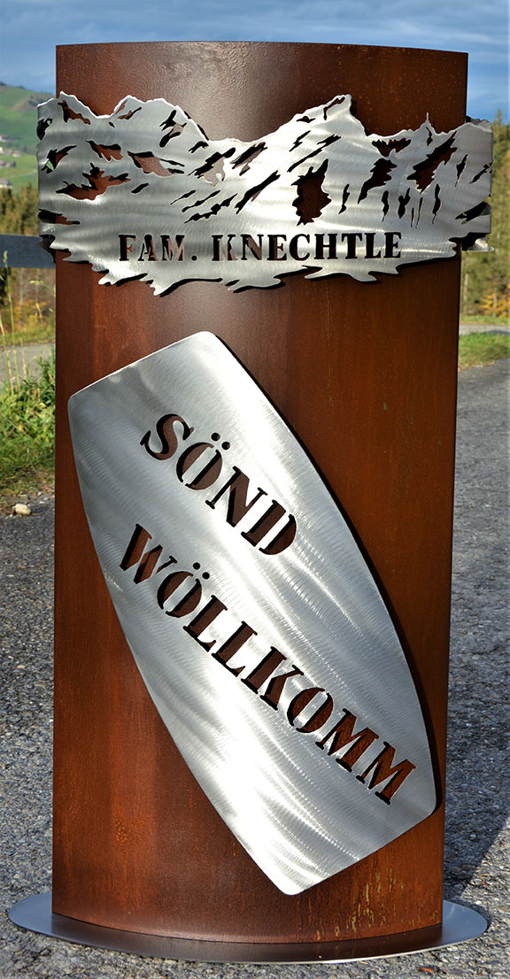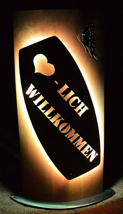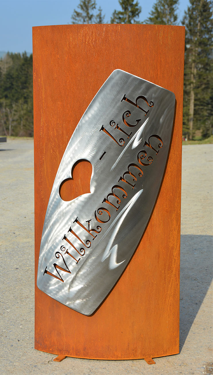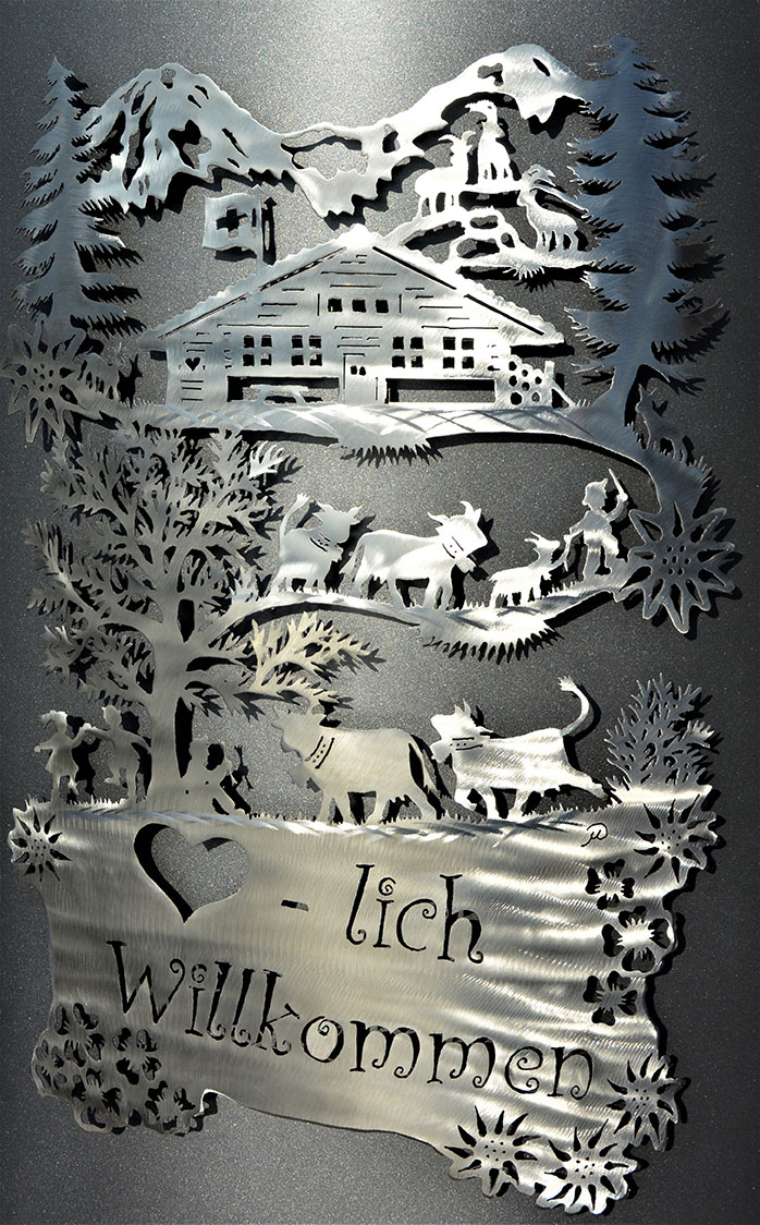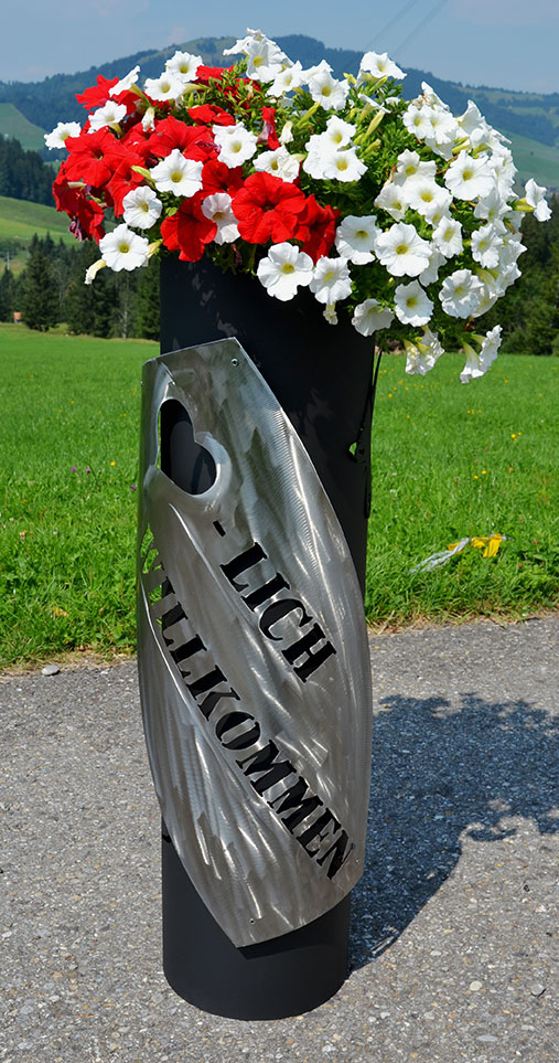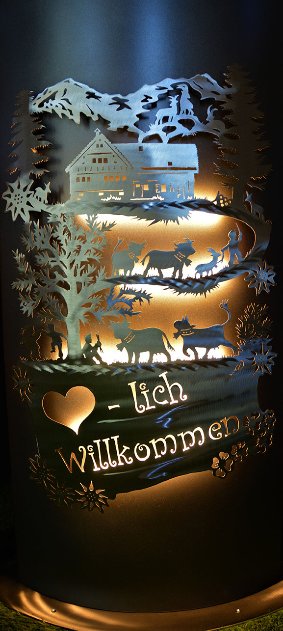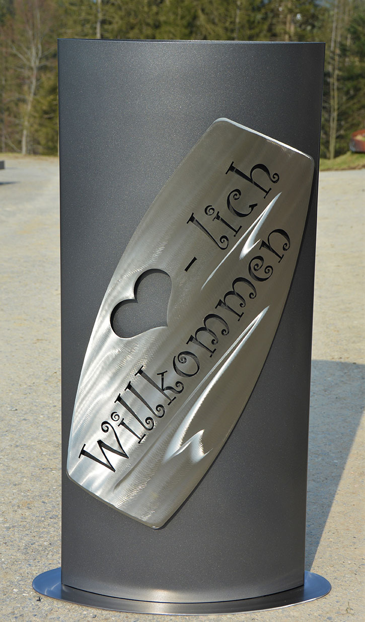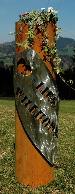 Eisensäule mit Alpleben, mit Herzlich Willkommen aus Edelstahl