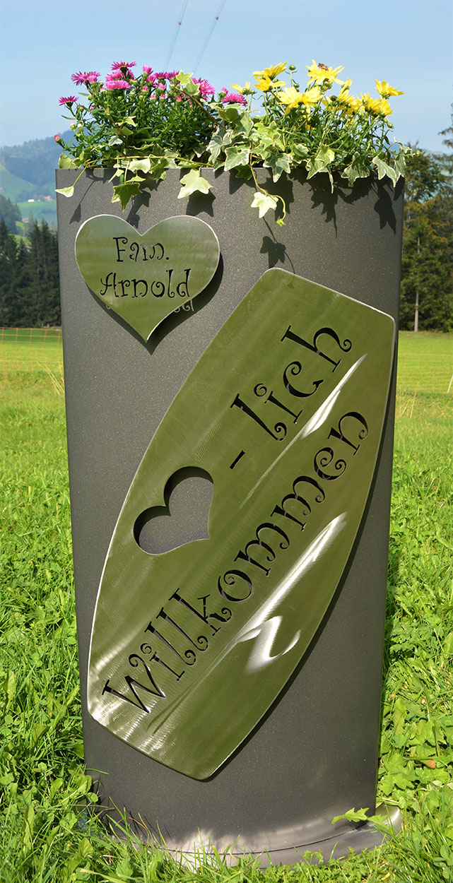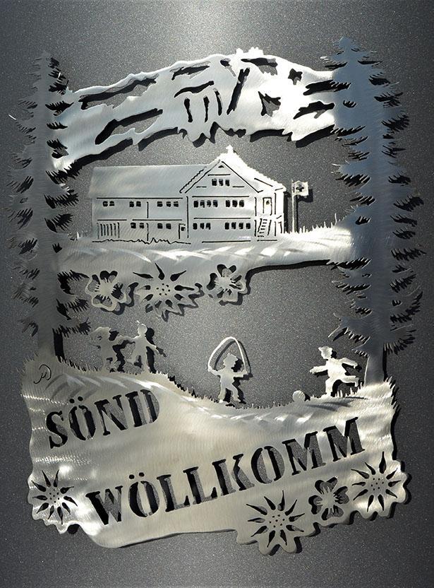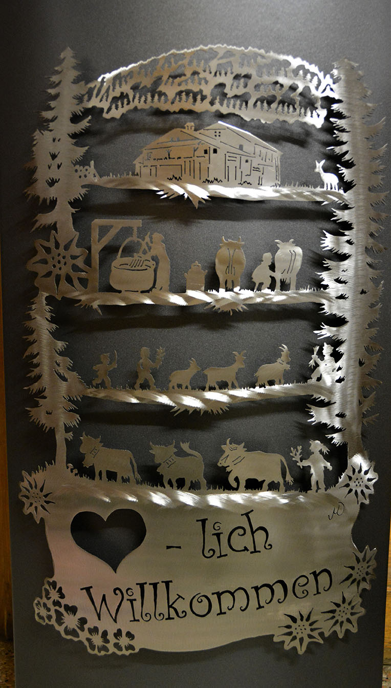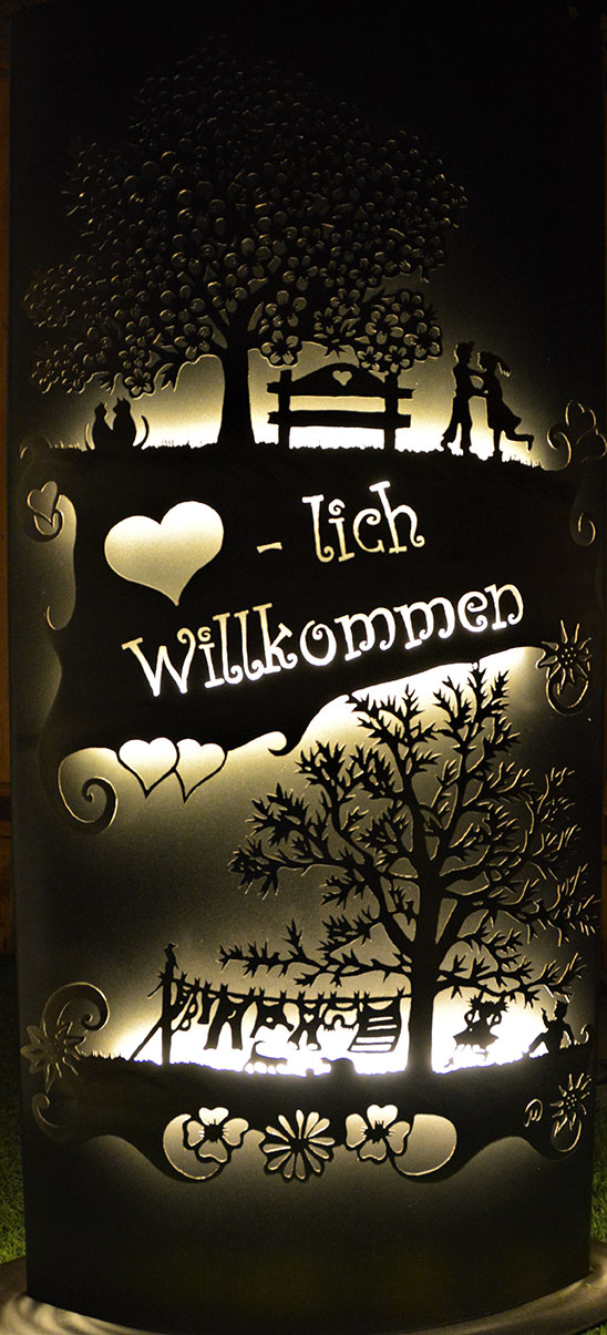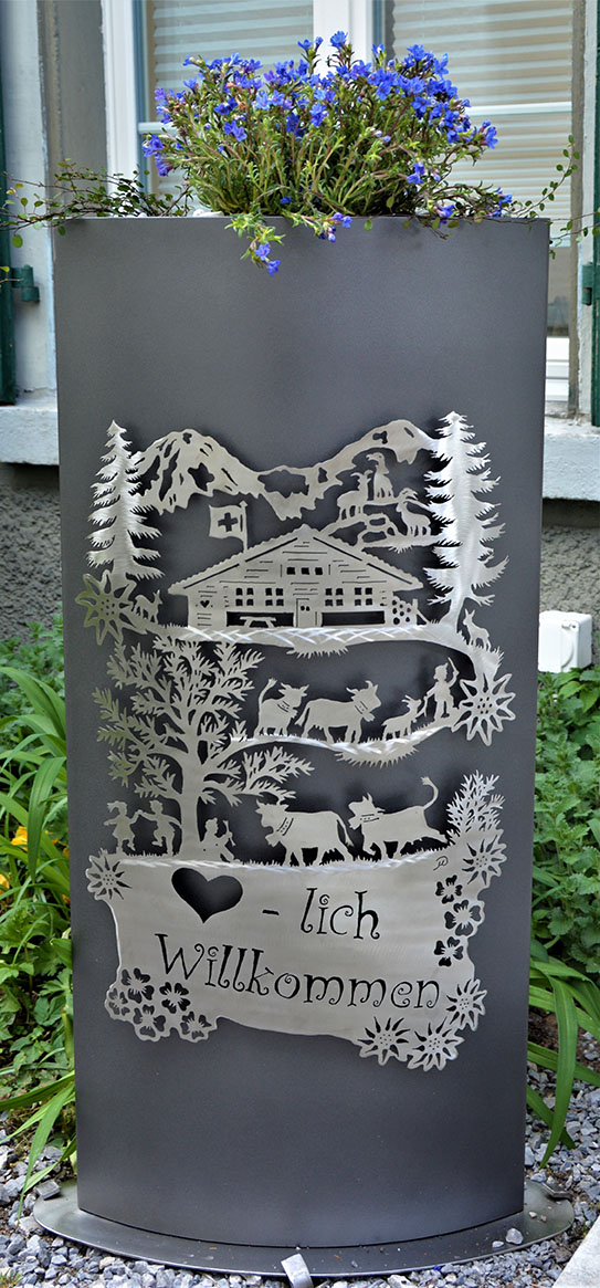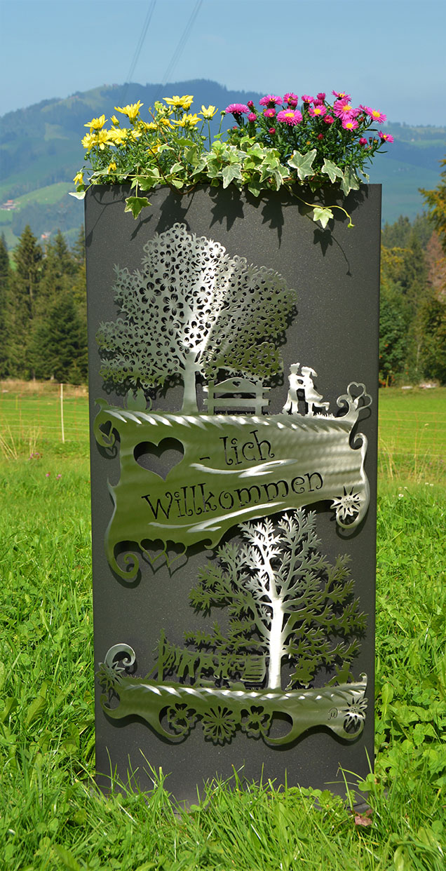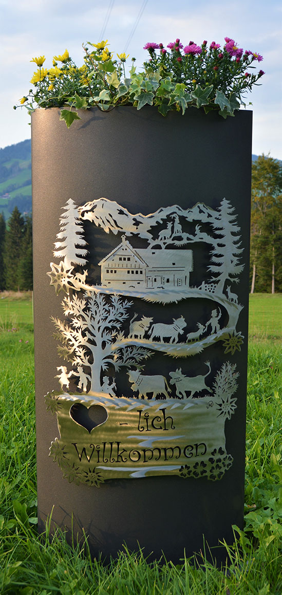 Eisensäule mit Alpleben, mit Herzlich Willkommen aus Edelstahl