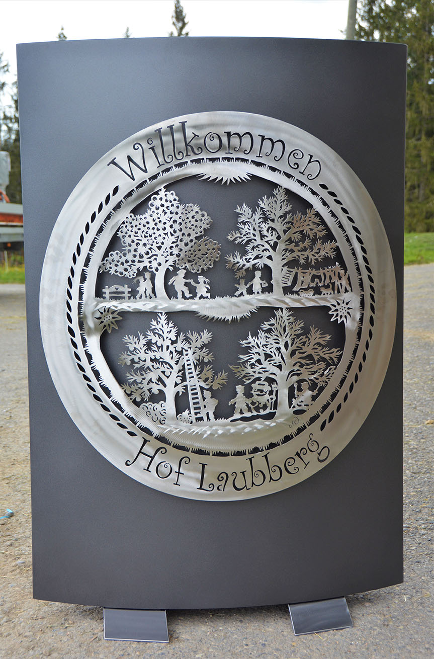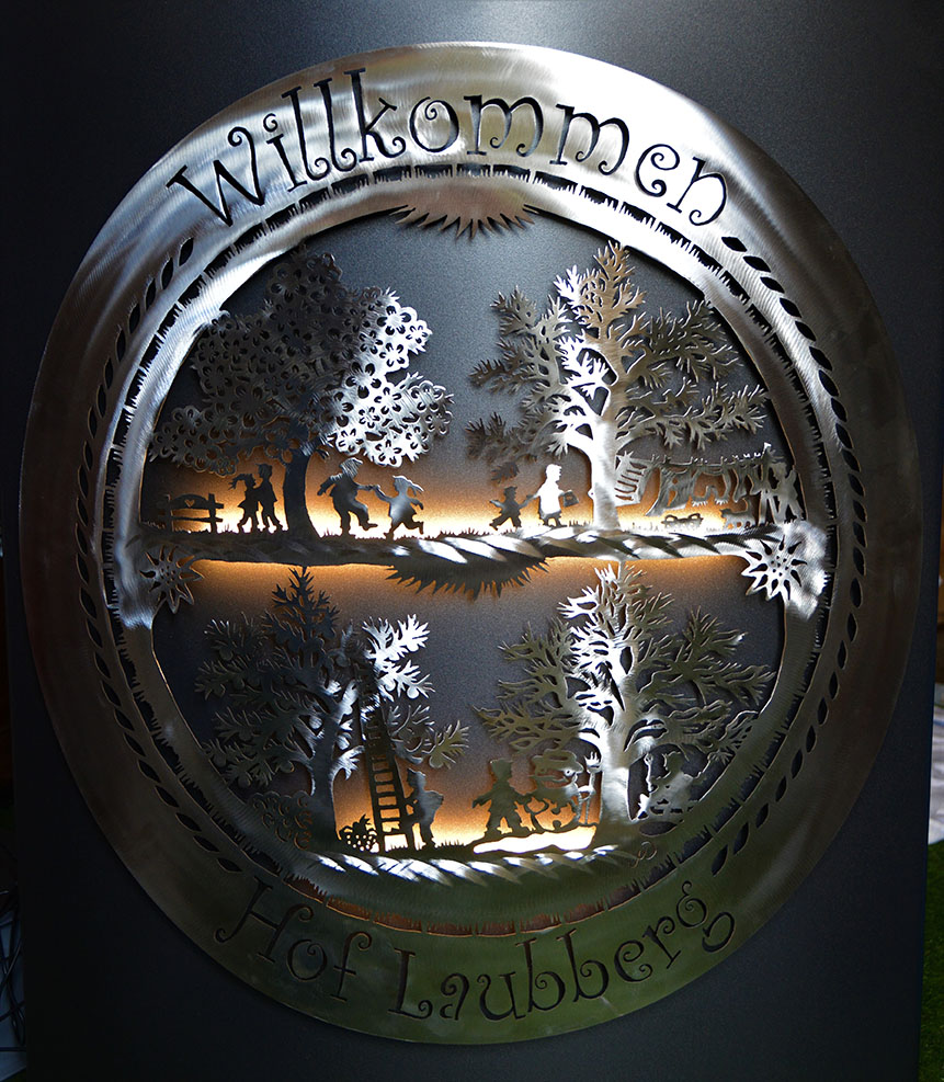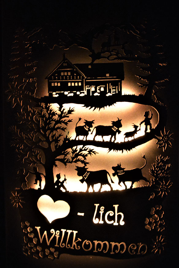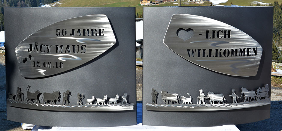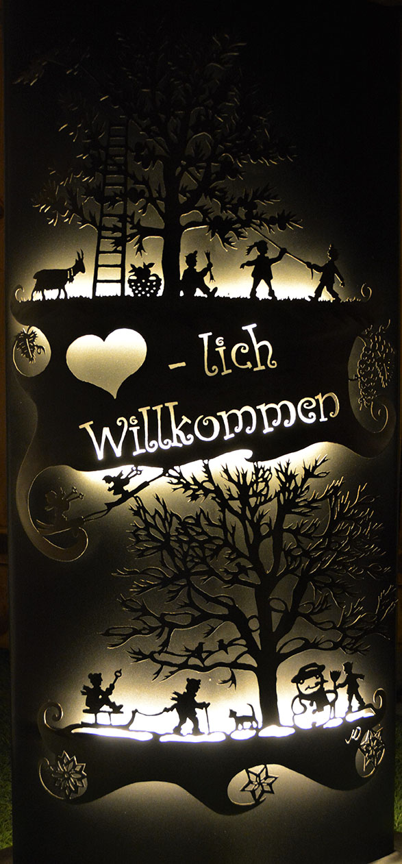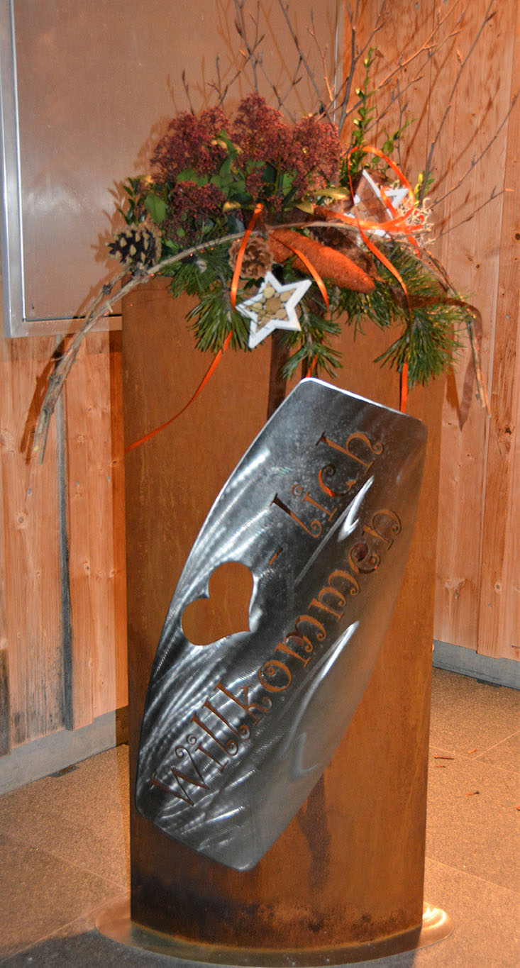 Eisensäule mit Alpleben, mit Herzlich Willkommen aus Edelstahl