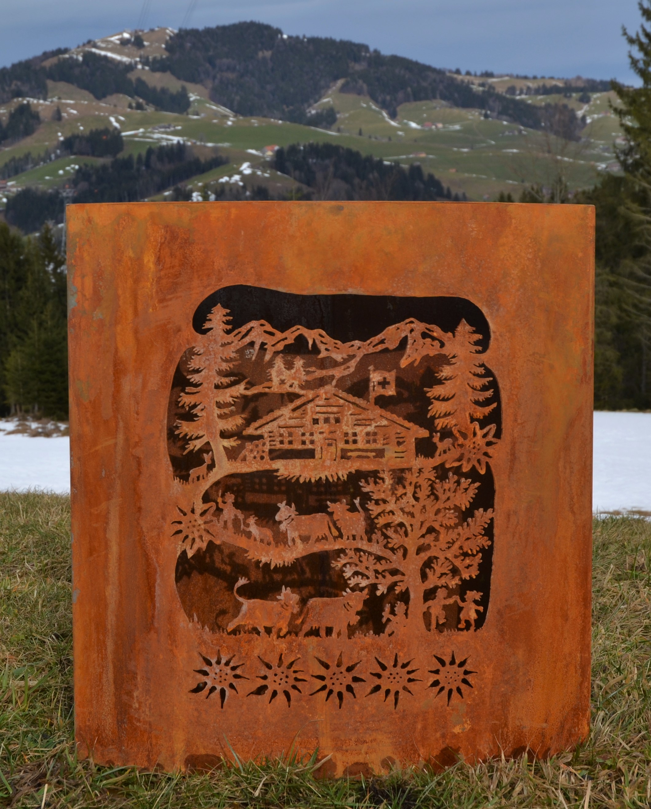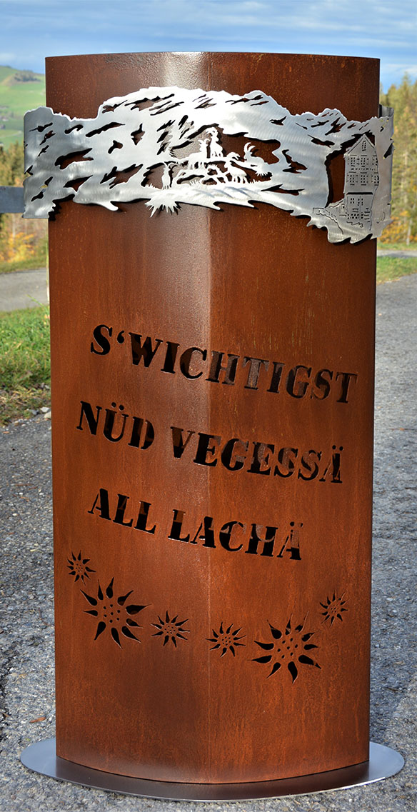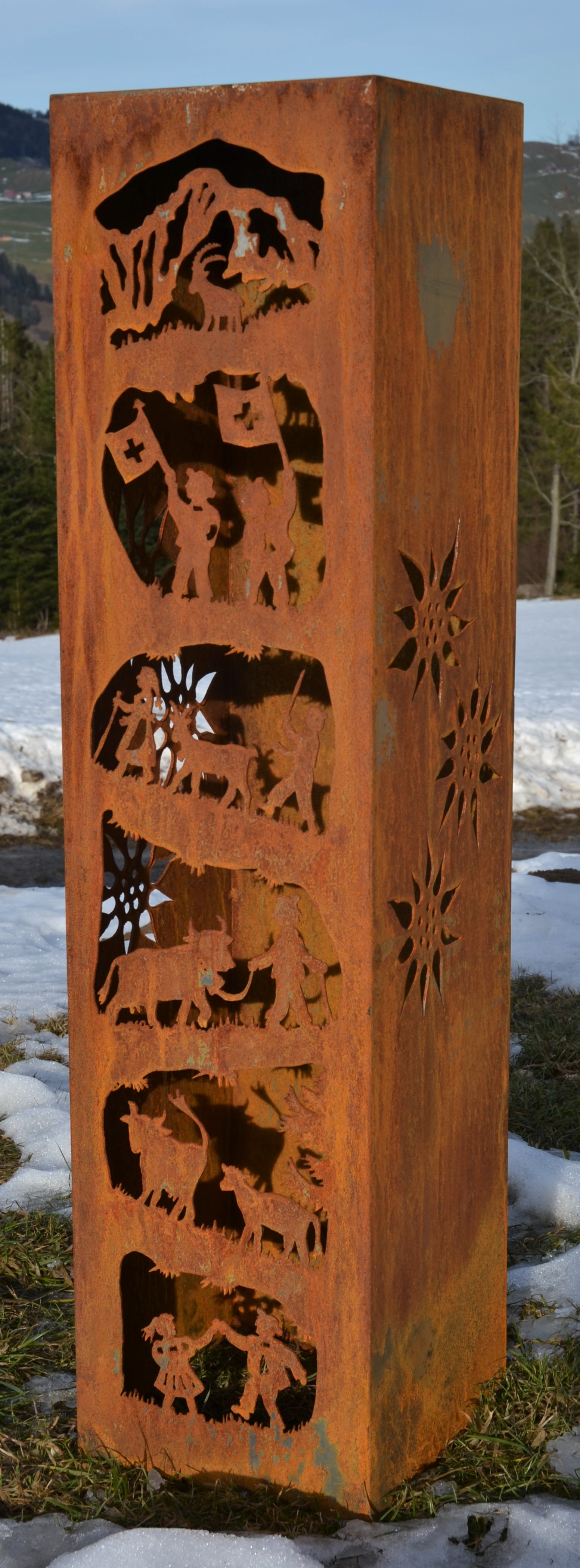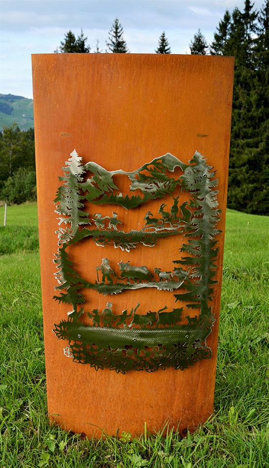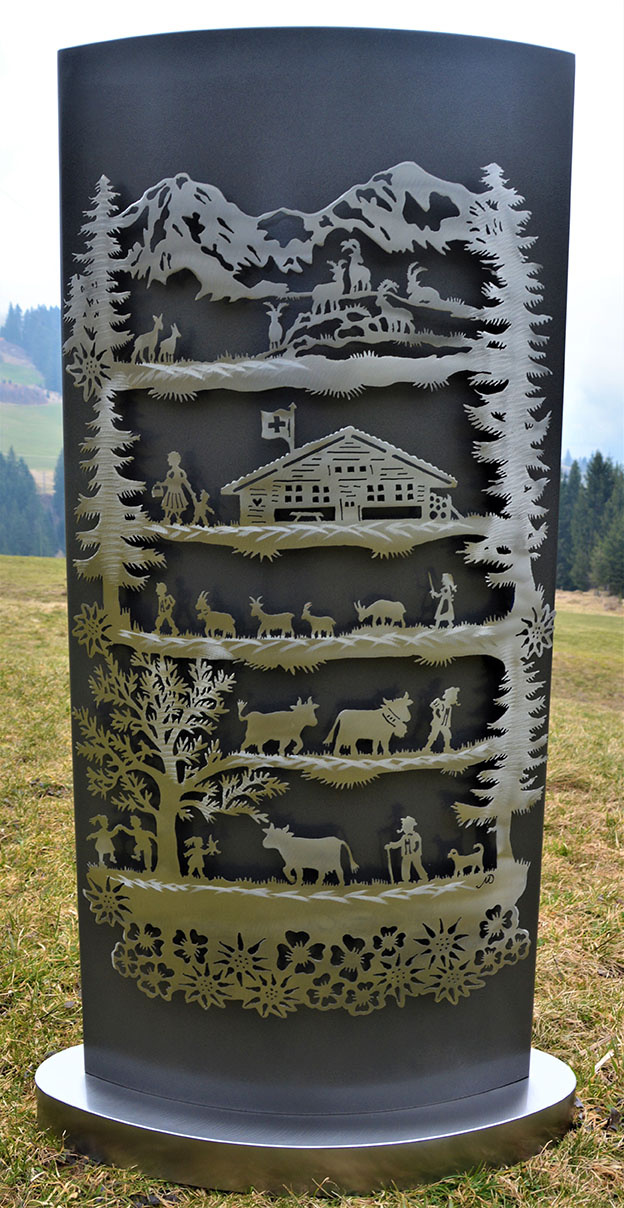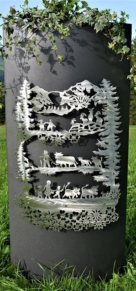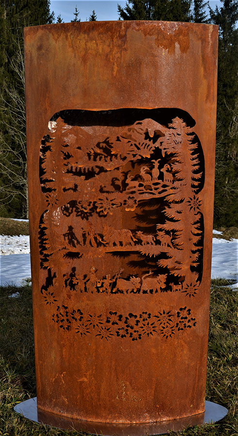 Eisensäule mit Alpleben aus Edelstahl