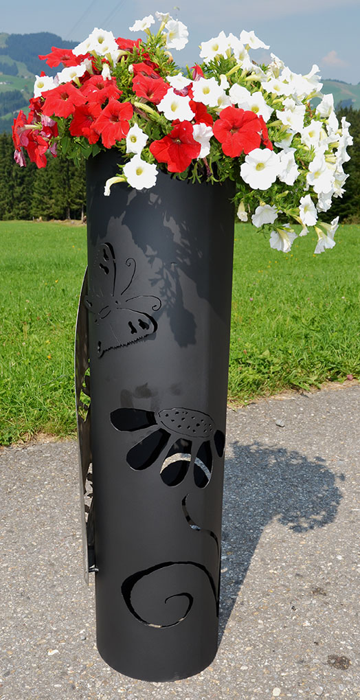 Eisensäule mit Schmetterlingen und Blumen