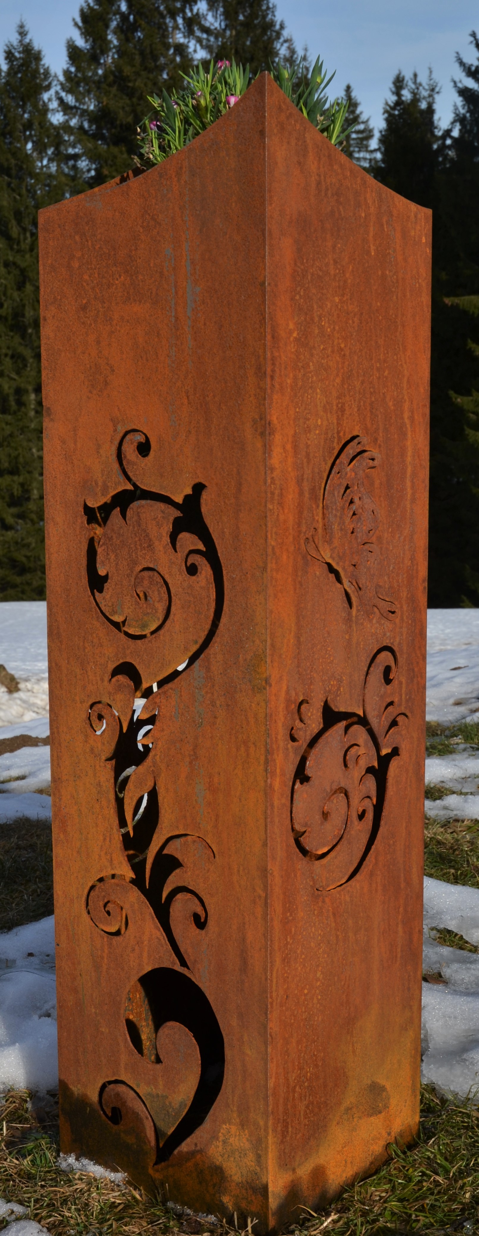Ziersäule aus Rost und ohne Zusätze